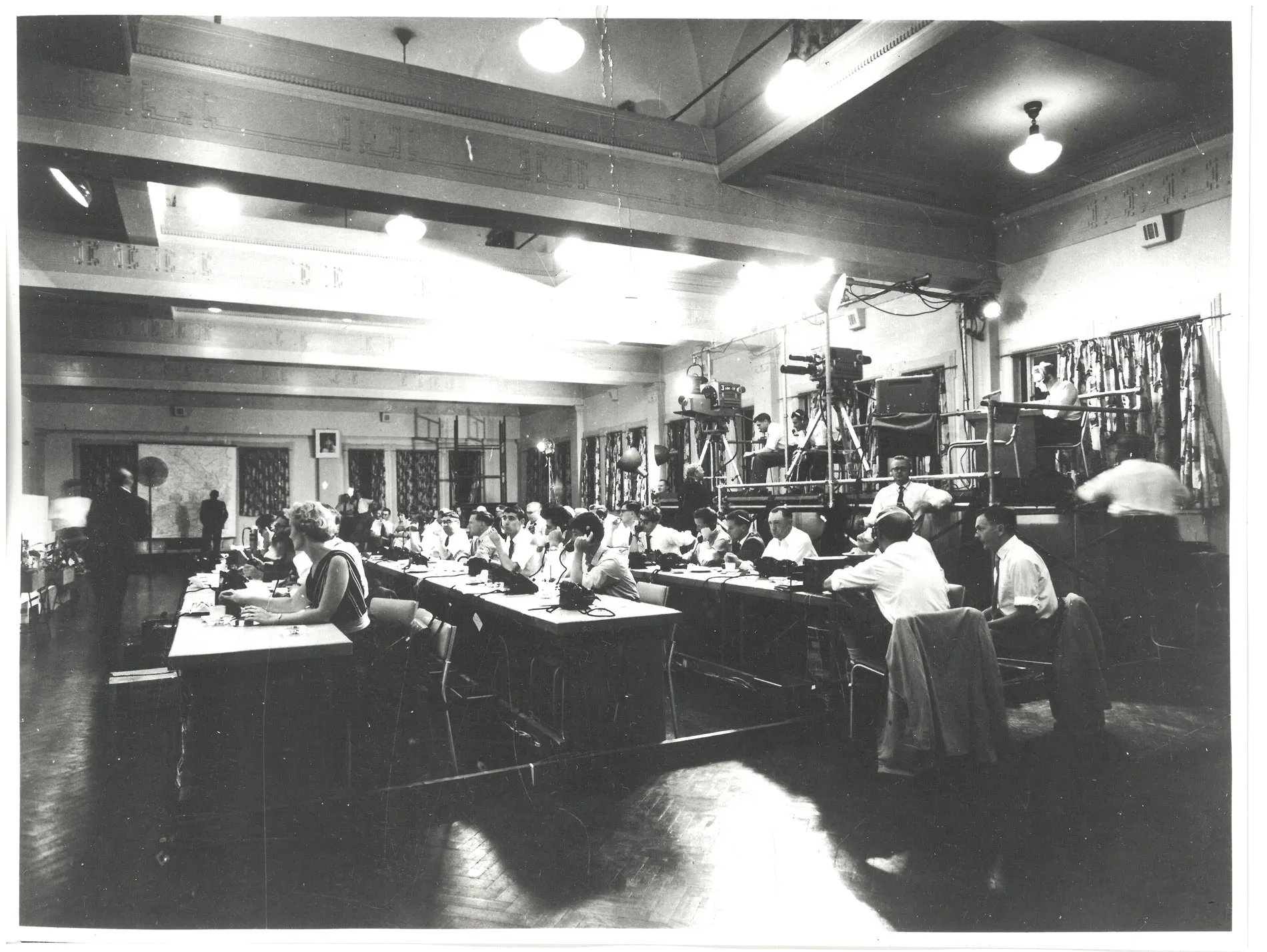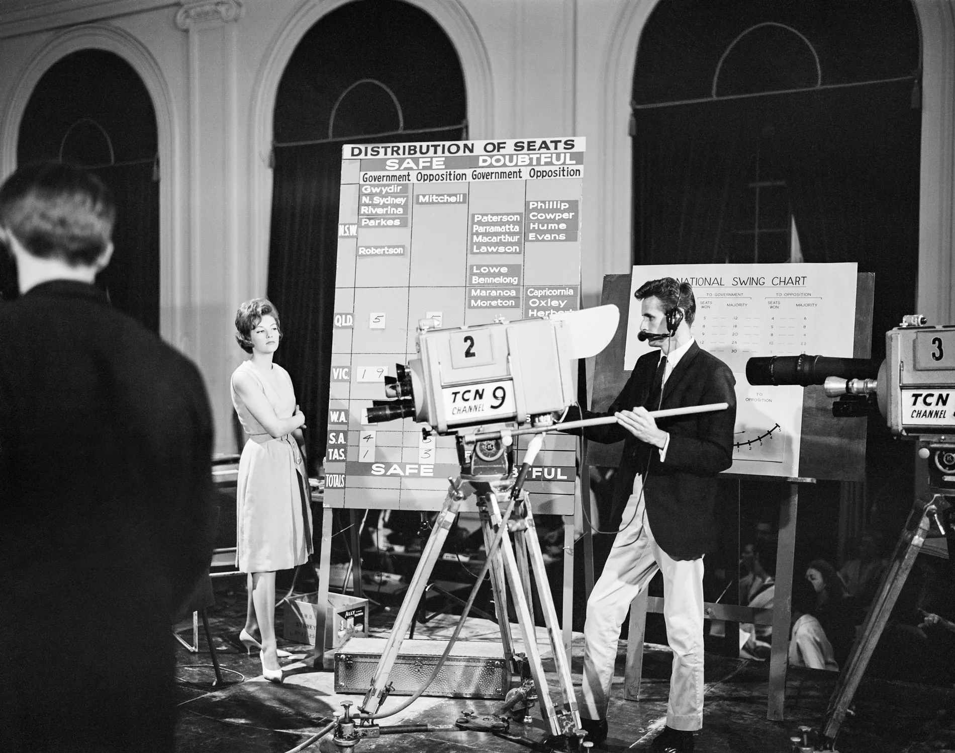 Television coverage of the 1963 federal election at the Tally Room in Albert Hall, Canberra.