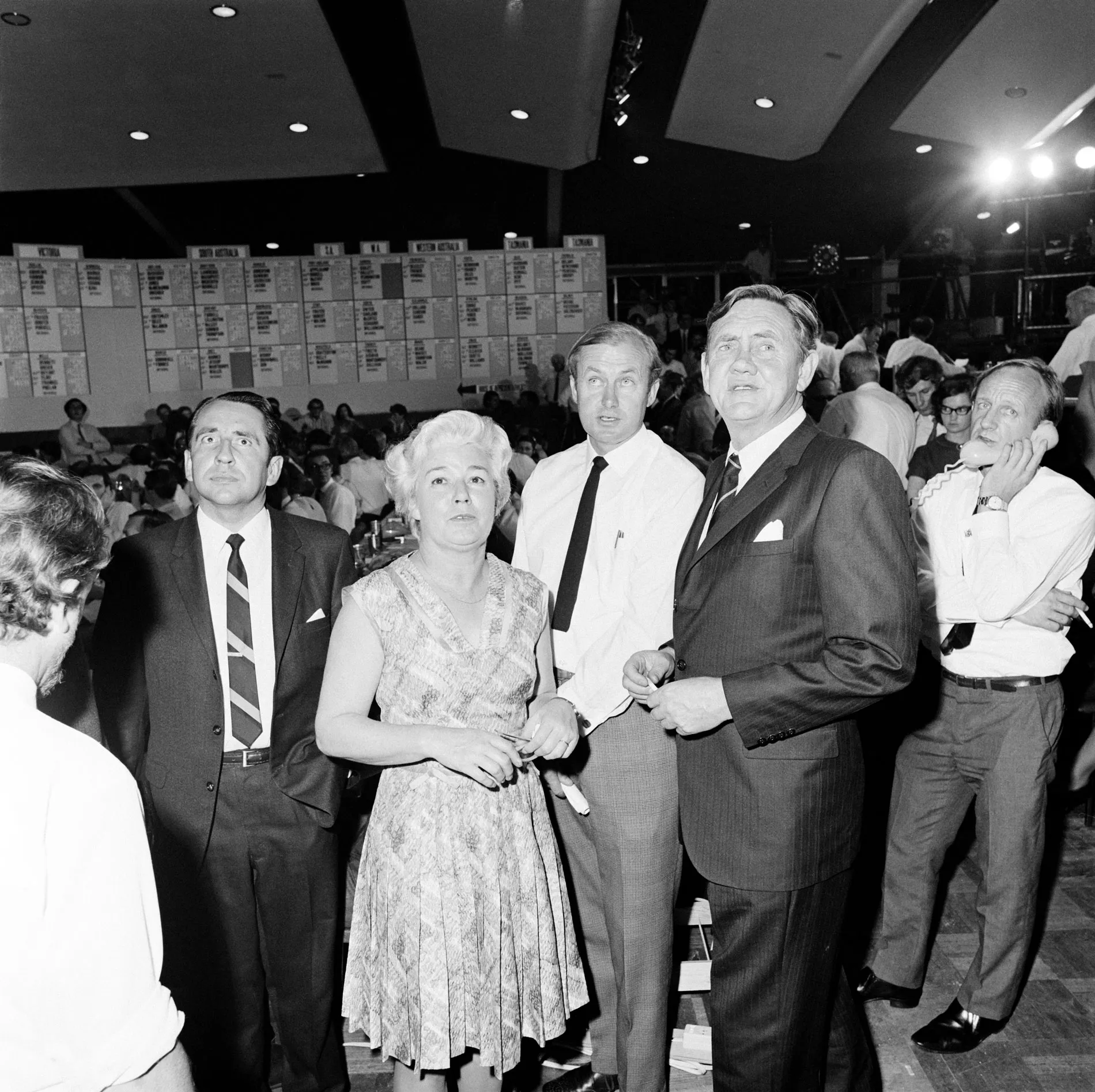 John Gorton at the National Tally Room during the 1969 federal election night. Gorton was the incumbent prime minister and retained the prime ministership in the election.